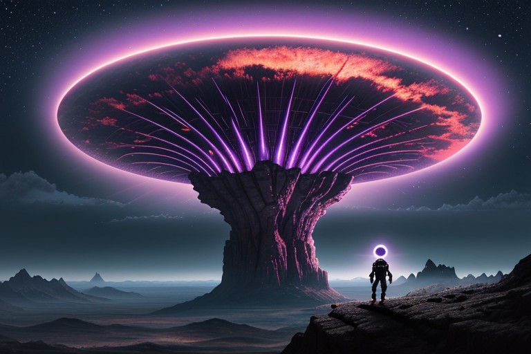 A vast alien landscape, filled with bizarre rock formations and glowing, bioluminescent plants. Strange, otherworldly creatures roam the terrain—some with multiple limbs, others floating in the air. The sky is an unusual shade of purple with two suns hanging in the distance, casting a surreal light over the landscape. Alien structures rise in the distance, and the air is filled with the hum of unknown life forms, creating a sense of both wonder and danger