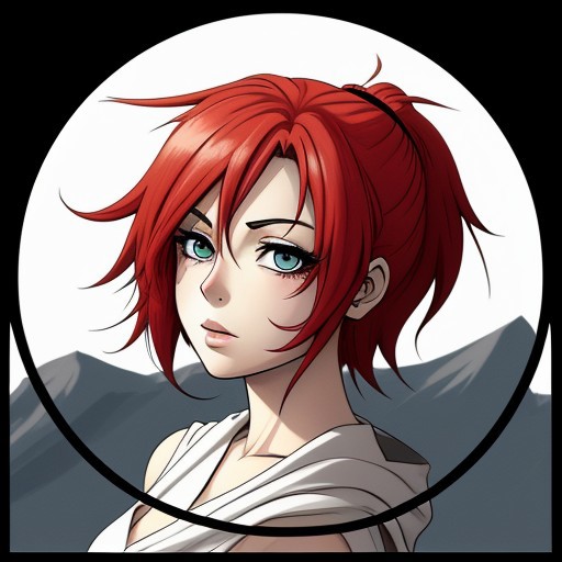 ink. Beautiful girl redhead anime style. Shapes and dynamic in background Outlines -- --