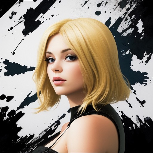 ink. Beautiful girl blonde burnnete style. Shapes and dynamic in background Outlines -- --