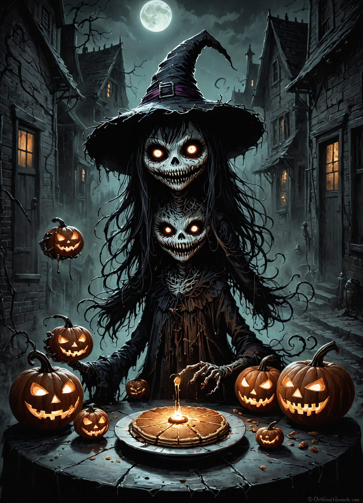 DonMB01dD4rkXL shadowy creepy doll art animals dark alley ghostly pancakes witch hats sinister laughter witch's cauldron glow spiderweb carving jack-o'-lanterns <lora:DonMB01dD4rkXL:0.8>
