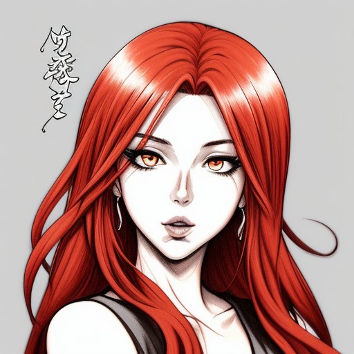 ink. Pencil Beautiful girl redhead anime style. Anime style. Smoking. Mature content. Black, white, red, orange colors. Shapes and dynamic in background Outlines -- --