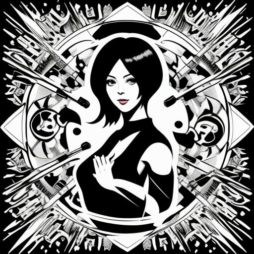 ink. Beautiful girl black hair style. Shapes and dynamic in background Outlines -- --