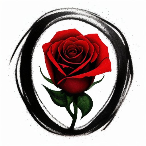 ink. Red Rose Heavy dark black outlines. White background.