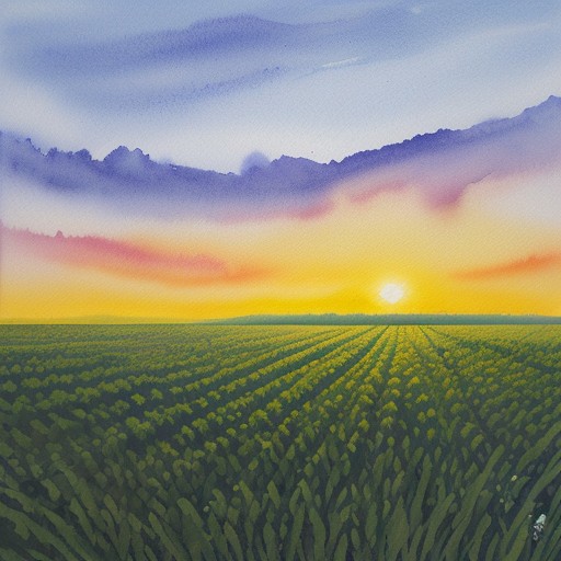 Abstract watercolor painting. beautiful field of crops at dusk.