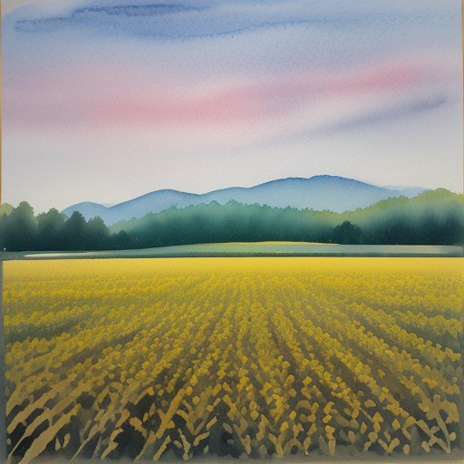 Abstract watercolor painting. beautiful field of crops at dusk.