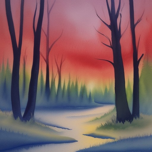 Abstract watercolor painting. beautiful forest at dusk.