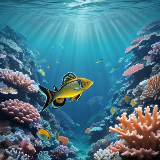((masterpiece,best quality)), underwater, no humans, colorful fish, coral, deep_water, algees, lots of fish swim around