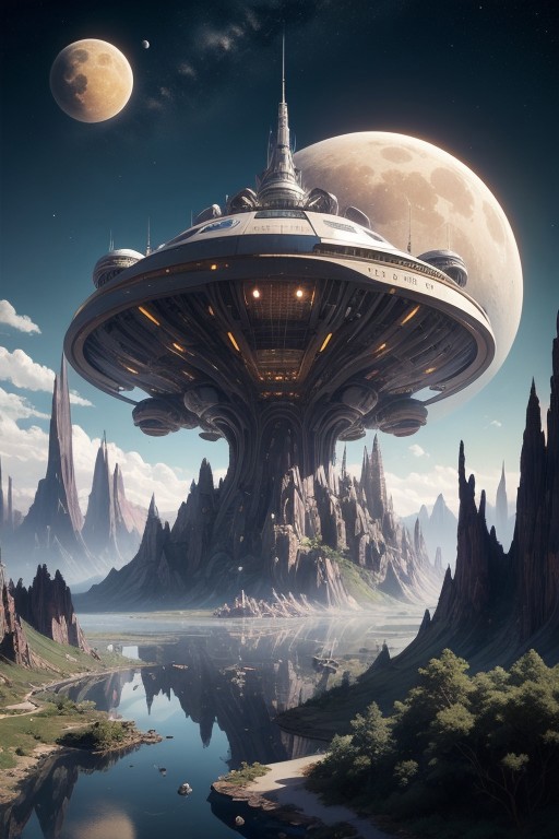 space planet, sun, moon, stars, (big rocks:0.9), (ripples, reflections:0.9), spatial futuristic castle, (small river pond:0.8), space forest, (space village:1.2), (stunning nature aquatic environment:0.8), spaceship, (unknown exotic land:0.9),) (nice alien civilization), (beautiful space fantasy scifi futuristic landscape:0.9, (very detailed:1.2), (best quality:1.2), sharp focus, high contrast, cinematic lights, backlight, shadows, (lens flare:0.4), (vibrant colors, colorful):0.7, (Lilac flowers:0.9) and leaves, <lora:Detail Tweaker LoRA add_detail:0.8><lora:depth_of_field_slider_v1:5> <lora:SDXLrender_v2.0:0.9> <lora:1970RetroFuturism:0.3> 1970retrofuturism