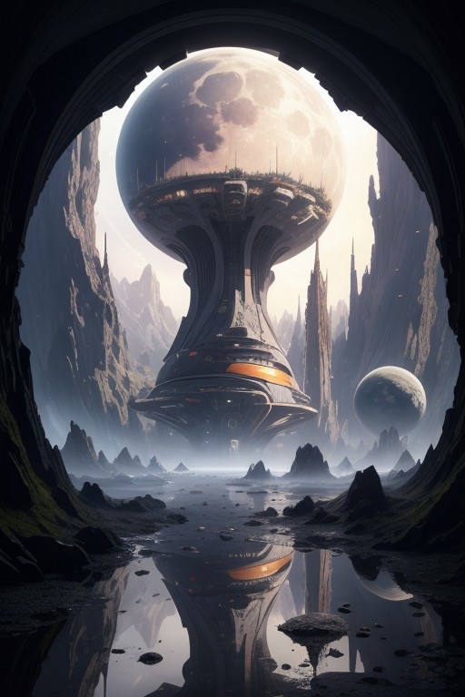 space planet, sun, moon, stars, (big rocks:0.9), (ripples, reflections:0.9), spatial futuristic castle, (small river pond:0.8), space forest, (space village:1.2), (stunning nature aquatic environment:0.8), spaceship, (unknown exotic land:0.9),) (nice alien civilization), (beautiful space fantasy scifi futuristic landscape:0.9, (very detailed:1.2), (best quality:1.2), sharp focus, high contrast, cinematic lights, backlight, shadows, (lens flare:0.4), (vibrant colors, colorful):0.7, (Lilac flowers:0.9) and leaves, <lora:Detail Tweaker LoRA add_detail:0.8><lora:depth_of_field_slider_v1:5> <lora:SDXLrender_v2.0:0.9> <lora:1970RetroFuturism:0.3> 1970retrofuturism