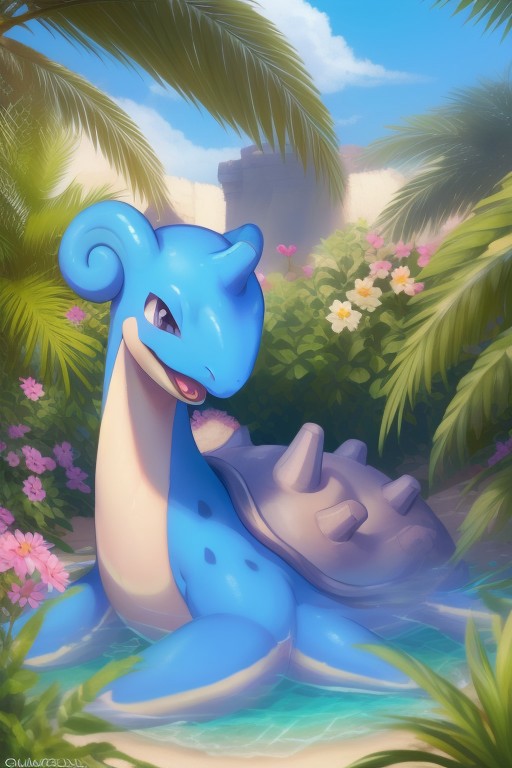 A happy cute, LaprasXL, Lapras, Pokémon, looking to the side, portrait, (solo:1.3), (wearing cool black shutter shades) head focus, in a lush beach, surrounded by colourful flowers and vibrant plants, with a clear blue sky overhead. Adorable, heart warming, nature, cheerful, detailed, bright colours, friendly expression, shiny, eco-friendly, environmental, (good anatomy), summertime, sunlight, shadows, digital art, whimsical, playful, intricate details, high resolution, photorealistic, joyful, gentle, soft lighting, charming, outdoor setting, cartoonish style, enchanting, vivid, appealing, character design, imaginative, family-friendly, [photography, realistic, photorealistic, (8k), (highly detailed), cinematic lighting, intricate details, (high resolution), award-winning, correct focus, realistic, realistic lighting, (highly detailed), masterpiece], ((Cinematic Still-Shot))