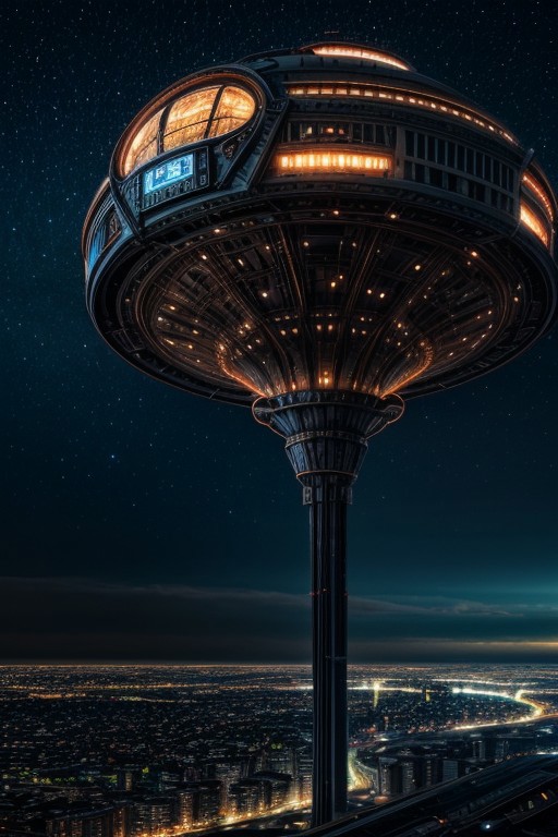 score_9, score_8_up, score_7_up, score_6_up, score_5_up, score_4_up, (absurdres, best quality, masterpiece:1.4), illustration, photorealistic, cinematic lighting, dynamic angle, perfect composition, planet, futuristic city, alien planet, advanced architecture, floating structures, glowing lights, extraterrestrial culture, night sky, bustling metropolis