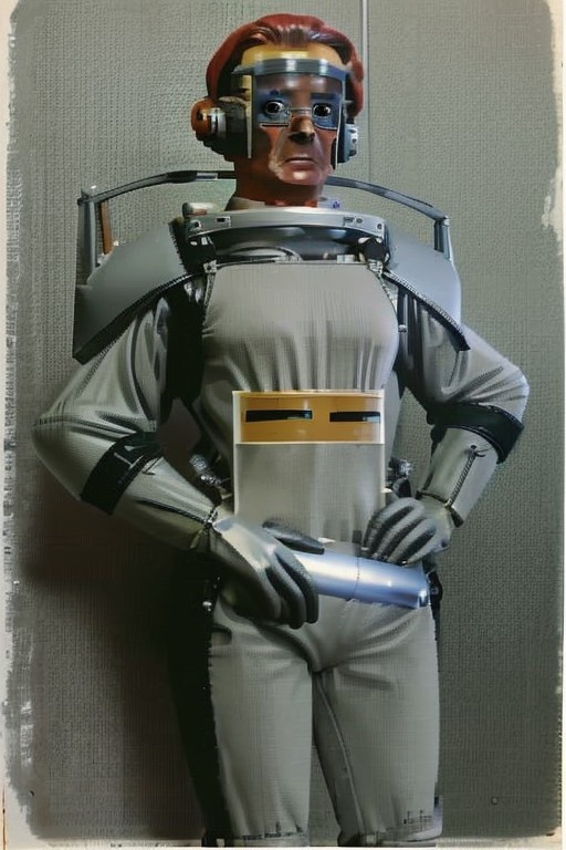 vintage_sci-fi an anthropomorphic wolf dressed as a technician or scientist