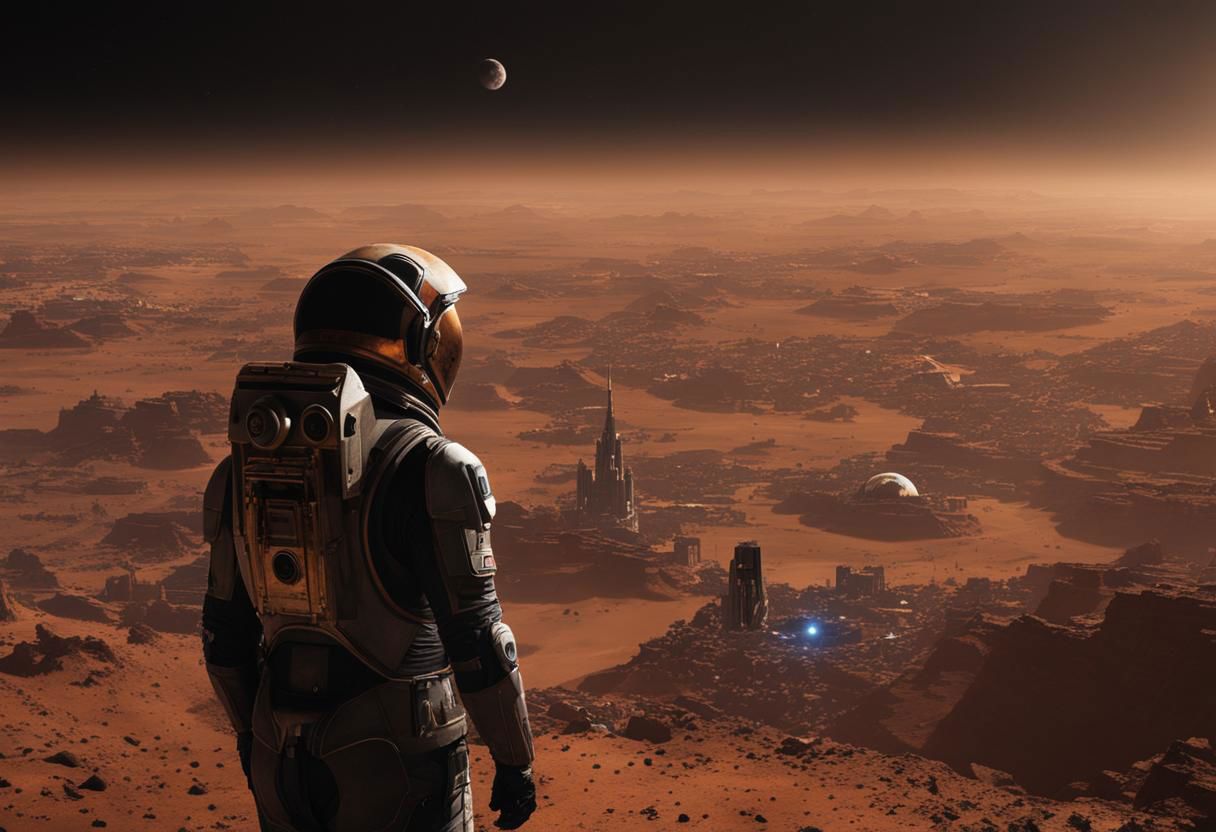 (masterpiece), ultra HD, Space conquest of Mars, black sky of space, Dim light, city,