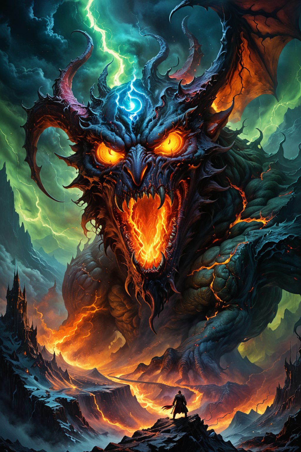 reversed world, turbulence, balrog, eye of sauron, shadow above world, dread winter reigns, eldritch, , masterpiece, dark fantasy, magic, glow, mysterious, emotional, expressive, poignant, disturbing, absurdes, horror theme, scary, eclipse, hypnotic, colorful, brushstrokes, dry brush, dramatic, perfection, paiting, concept art, detailed, acid deep colors, stunning color scheme, mesmerizing and otherworldly visual experience, complex, high resolution, artistic, proffesional, composition explores the boundaries of reality, creating a visually arresting scene that defies conventional norms, <lora:xl_more_art-full_v1:0.7> striking, neon lighting, , , <lora:DnD_Grainyboyz V2 SDXL Lora:0.45> DnD_Grainyboyz