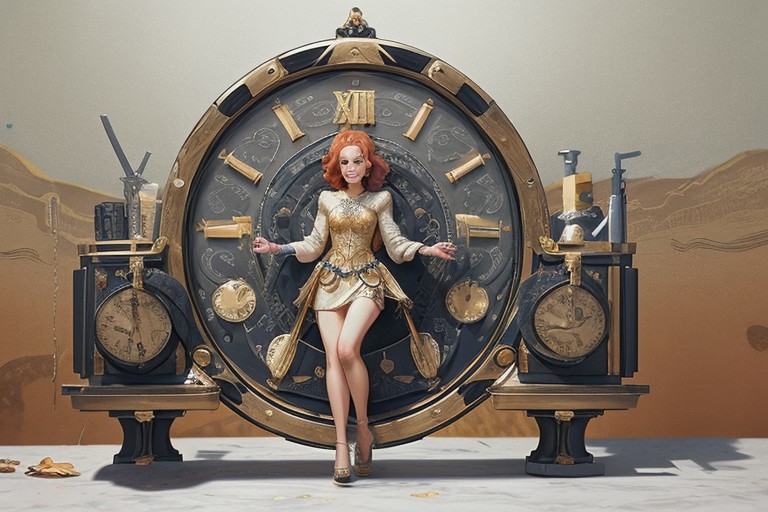 A large antique grandfather clock stands on a marble pedestal in an amber-gold autumn park (OverallDetail, advntr)