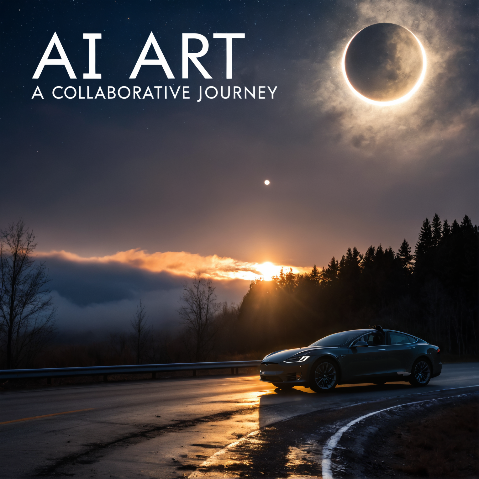 A captivating cinematic poster showcasing the power of AI art. The eerie ambiance of a total solar eclipse is perfectly captured, thanks to Stable Diffusion advanced techniques. The overlay text highlights the collaborative nature of the AI art community.