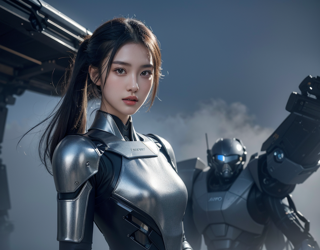 outdoor, ((upper body)), ((( wearing gray and black nano-suits)))+++, (wide hip:0.7, large breasts:0.8, perfect slender young girl body) ,Perfectly glossy skin ,25 yo mature girl, , picture of a vivid, (masterpiece:1.2),(extremely detailed),(8k:1.1),(perfect lighting,best quality,highres,original),(realistic photography:1.4) ,high detailed skin,shaded face, soft lighting, (small face),RAW, ultra highres, pores visible, , shiny_and_glossy_skin, asian beauty, (gorgeous beautiful 20 years old asian girl), ((best detailed slender body)), (asian idol, asian beauty, asian mixed), (complex, Machine background ,spaceship outdoors background, Mecha Transport parts:1.2), (dark and foggy environment:1.1), ((heavy fog environment:1.1)), (battlefield behind:1.2), <lora:JapaneseDollLikeness_v15:0.3>