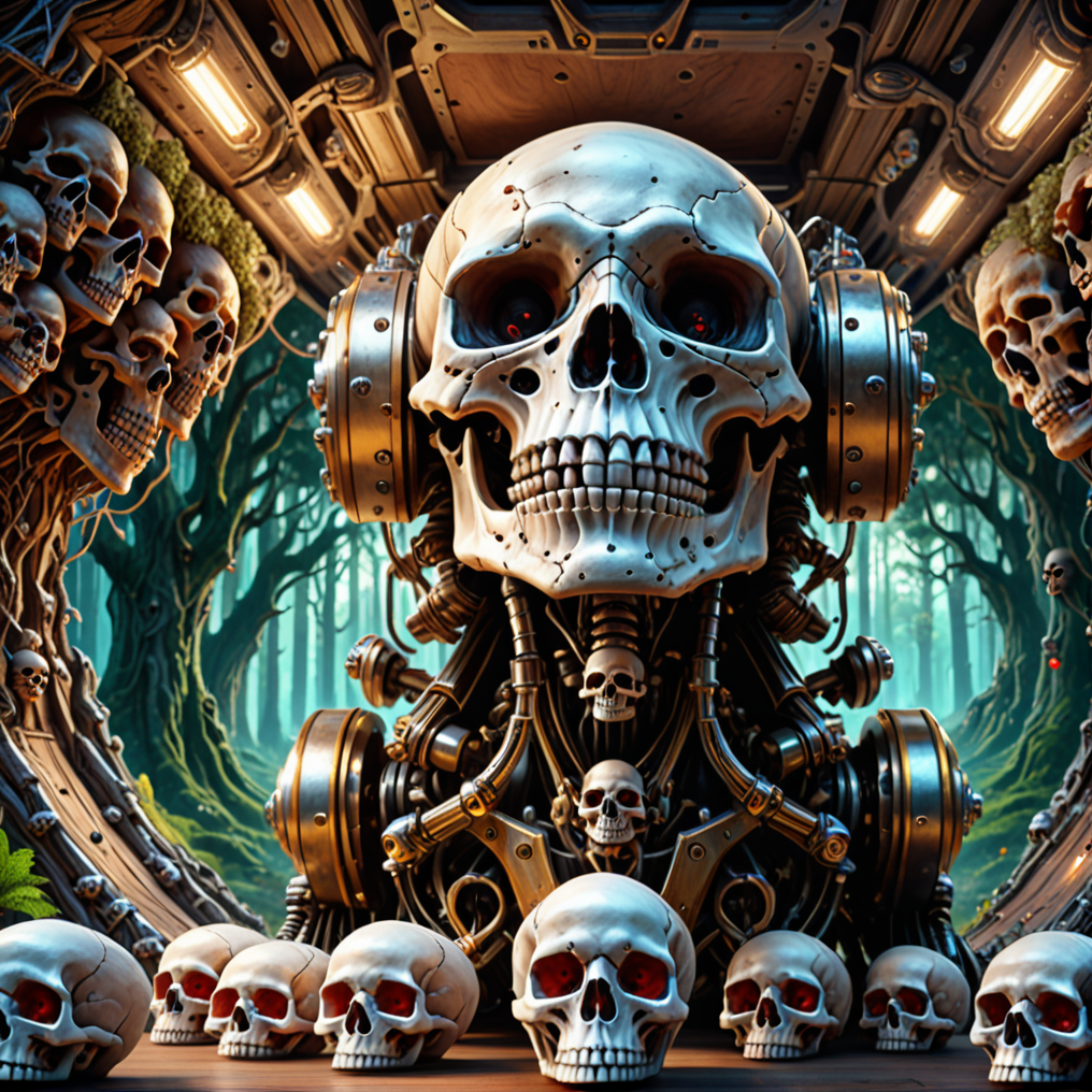 zPDXL, ((artwork)), ((perfect anatomy)), extremely detailed, detailed faces, Directly from the front, capturing the full face and expression, <lora:SlimesSkullWM:1> skulls, rating safe, {landscape with variety | forest | hallway } , { Trolls | bloodsucker | bipedal robot | end table }, { positive | spine-chilling | showstopping }, checkered background,