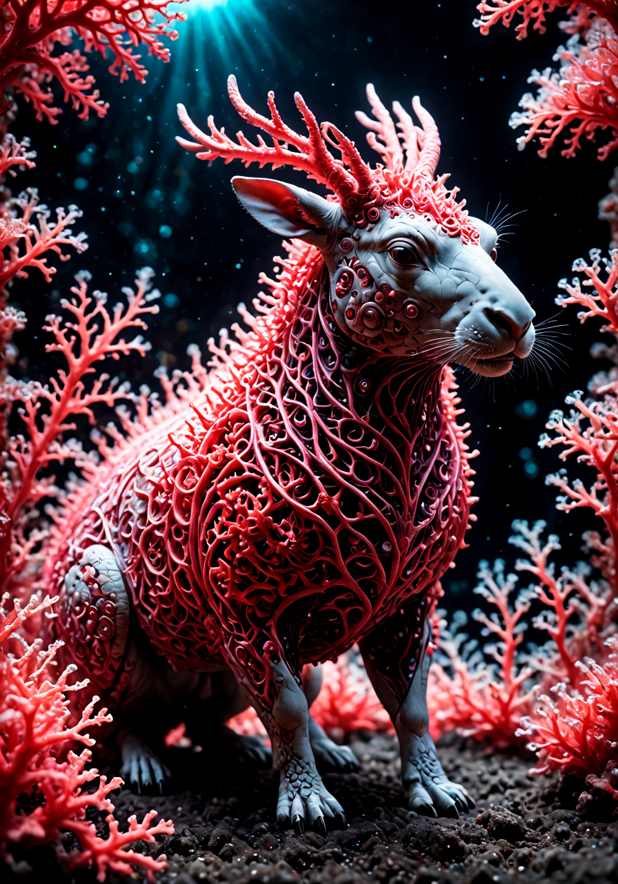 a (made of coral :1.2) capibara with intricate coral composition, all (fractal coral) body. It should be in a cartoon 3D style. The lighting should be sweet, and the colors should be vibrant. In a made of coral world, vibrant fantasy full of details of a fantasy epic view. Epic image. Dynamic scena movement., , coralbugXL<lora:- SDXL - vanta-black_contrast_V3.0.safetensors:0.3:0.3> <lora:coralbugXL.safetensors:1.0:1.0> <lora:aidma-Image Upgrader-v0.1.safetensors:0.3:0.3> <lora:Fantasy with epic details - XL SDXL v1.0.safetensors:0.3:0.3>