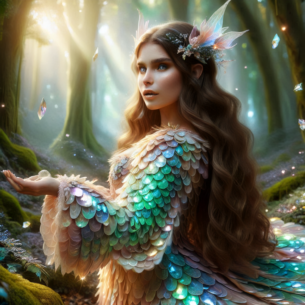 <lora:PinkieIriSclsSDXL:1>, p1nk1r1sc4l3s, 1girl, beautiful, elf, sorceress, wearing a cloak made of iridescent scales, sparkles around her fingertips as she casts a spell, magical, in a forest,
