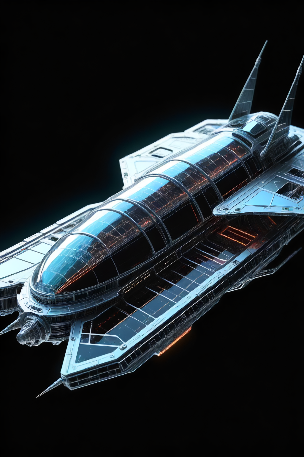<lora:World_of_Glass_Filament:0.8>, w0gf1, a highly advanced sci-fi alien spacecraft, huge, long, angular, vaguely X shaped, it's hull alternates between plain metal plates and panels made of tiny neon glass filaments, in orbit around a strange alien planet,
