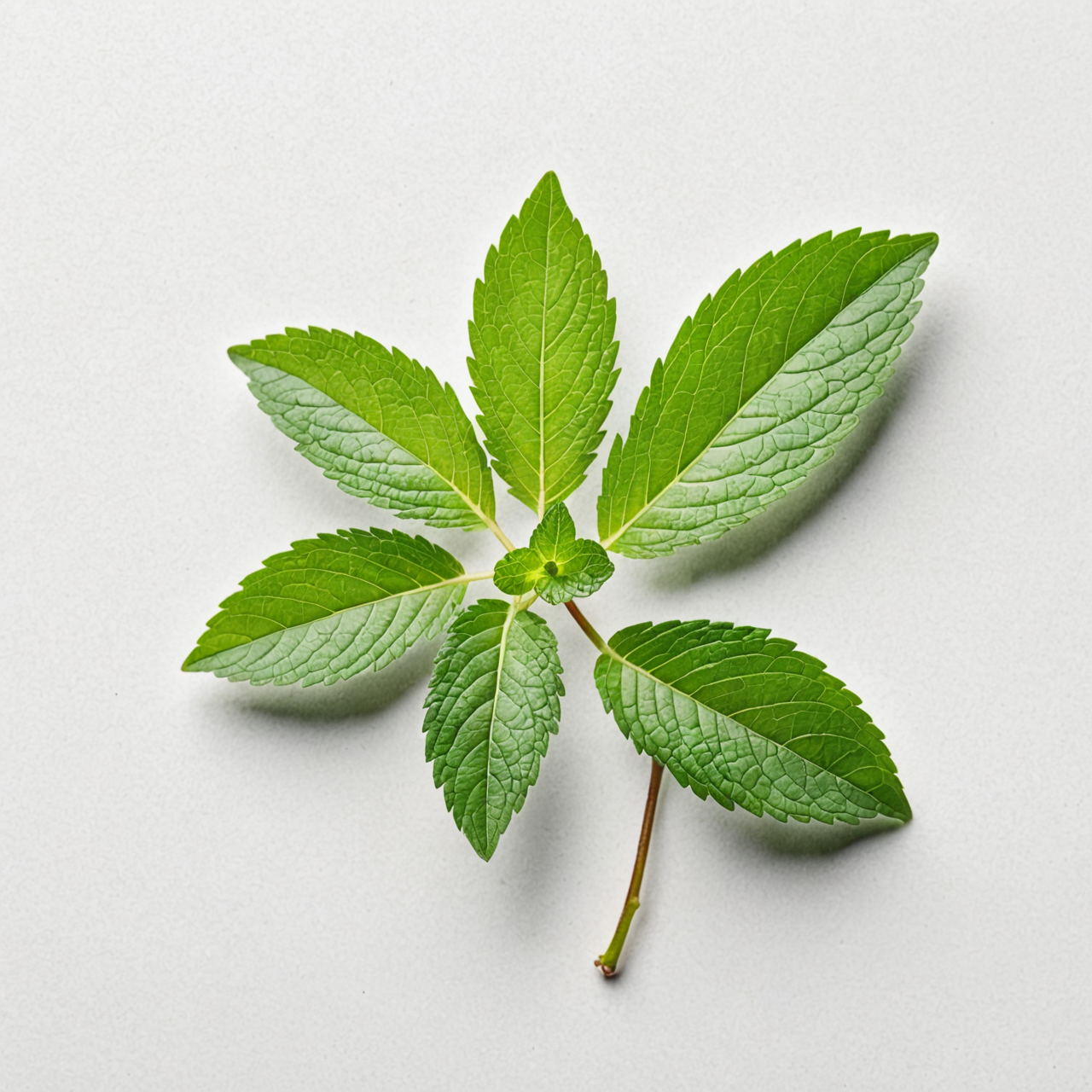 one mint leafs, on white table, white background,( view from top:1.5), best quality, high resolution, no plate