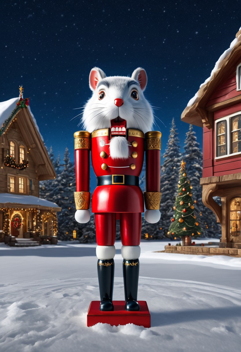 highly cinematic HD 8k HDR photograph of an extremely royal red and gold nutcracker, elegant, dancing in space<lora:Holiday_Nutcracker_SDXL:0.7> (with nuts:1.1), next to a squirrel, intricate, (open mouth, extremely highly detailed, high contrast, film grain:0.85), (white snowy blue Christmas background:1.23).<lora:Dance_Art:1.0>(space background:1.23)( leaping gracefully:1.25)