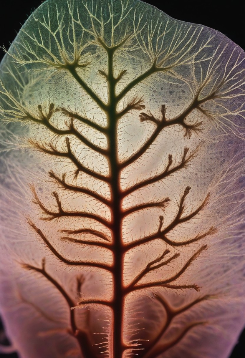 Microscopic mycorrhiza, fungal network, tissue, translucent, backlit