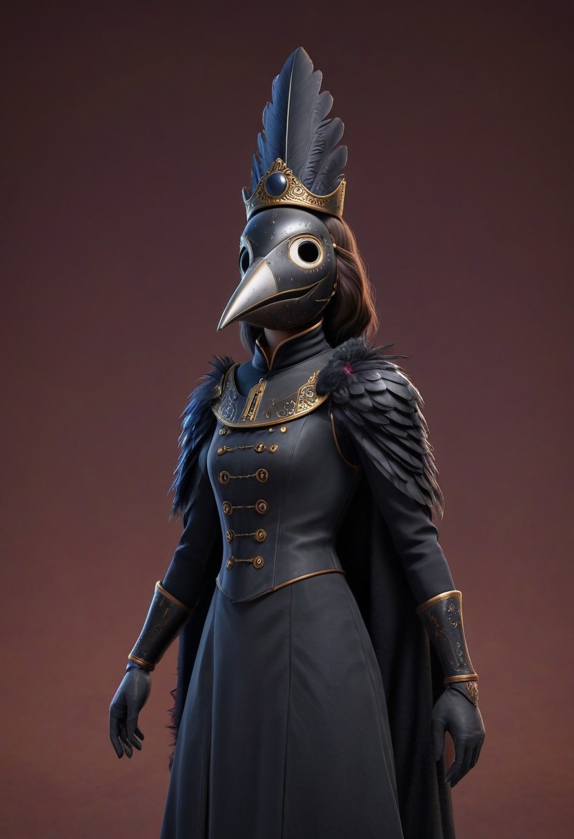 zPDXL3 , Expressiveh , score_9 , score_8 , score_7 , score_6_up , highly detailed , high quality , high res , skindentation , Art Noveau , Noveau , solo ,female , plague doctor, mask , dark halo , feathered wing , black feather , feather coat , voluptuous , dress , (blood eclipse , red sky ,background) ,nutcracker, wooden