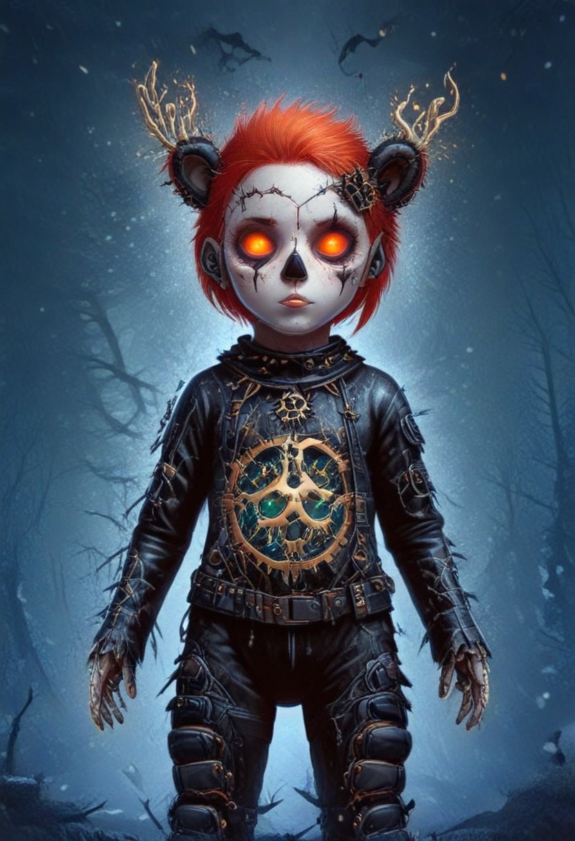 Blame! by Tsutomu Nihei see through, elven ears, full body, xmastedx, red hair, blue makeup, gray assassin, mandala, geometry, looking at viewer, black oil splatter, is standing infront of dark snowy forrest, STX&ChrisAncntRomeSnst, golden plated cables everywhere, translucent glass head, gears in background, black oil splatter, green everywhere, symbiotic everywhere, insects everywhere titanium everywhere, electric everywhere, easynegative, ng_deepnegative_v1_75t