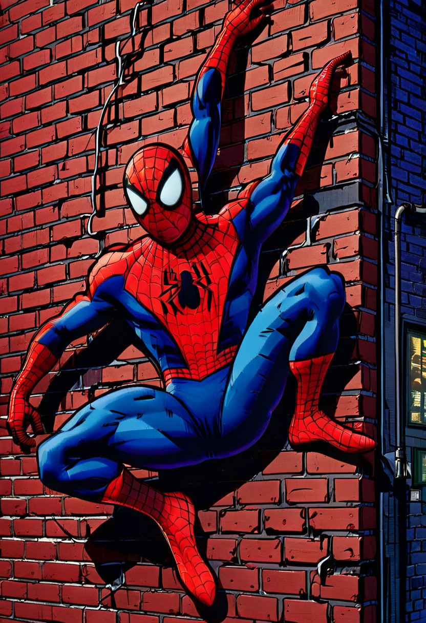 spider-man, 1 figure clinging to a wall at night, new york city, heroic,