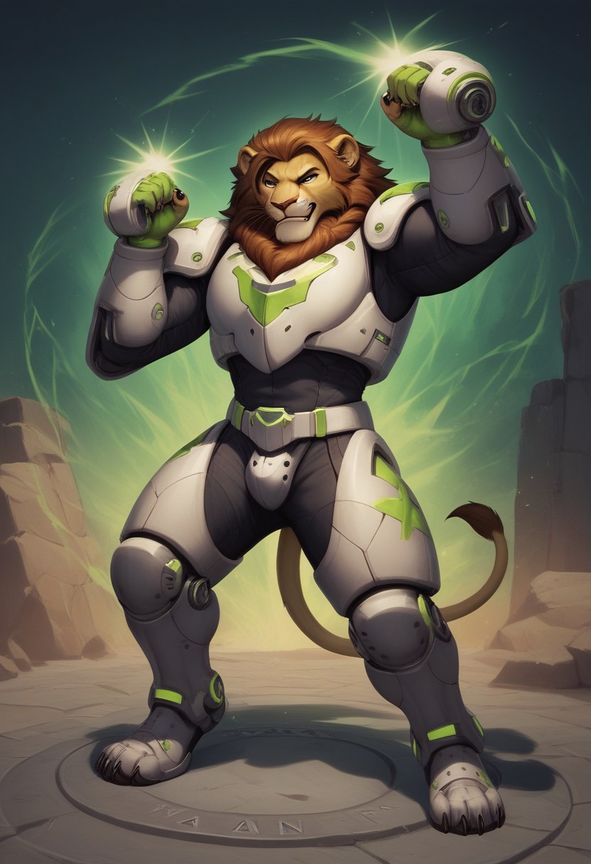 score_9, score_8_up, score_7_up, 1boy, solo, torso view,<lora:Anthro_Lionlioness_PONY_XL:1>, (anthro lion:1.2), lion male, black fur, fangs, claws, wearing green power armor,helmet,armor,arm cannon,power suit, green power suit, black fur, brown mane, <lora:Furry_Lora_Panther:0.8> very intricate, high quality details,vibrant, highly detailed, award-winning, professional,anime artwork, dynamic pose, action pose, intense, fun,