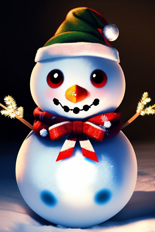 Cute (massive huge eyed), snowman, (wearing Christmas hat), 4k, high detail, high quality, realistic, full body,