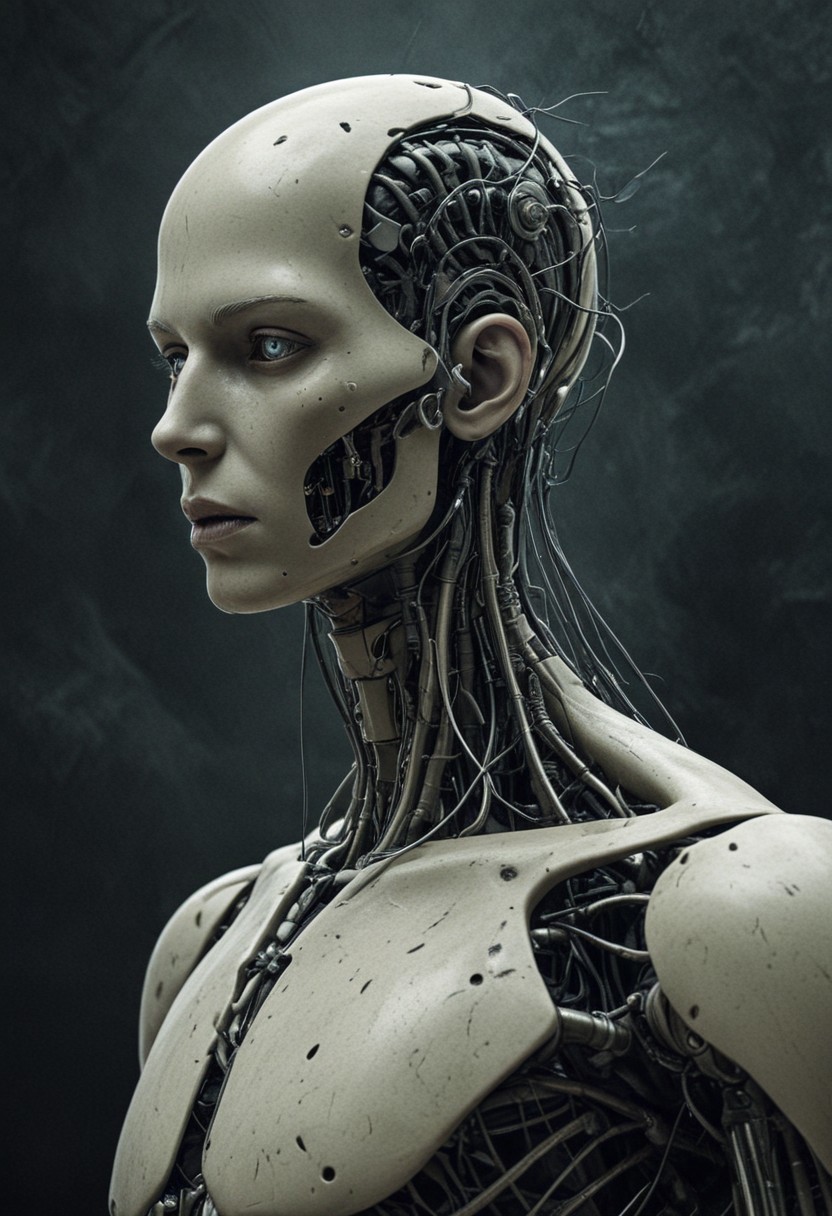 Hearing materialized voices, this creepy sleek cybernetic android can't cope with the illusionary delusions that enter the mind. Distinguishing reality from dream is a constant struggle, like a storm in the brain that cannot be silenced. The constant pain and agony is excruciating and seems impossible to subdue. Clarity and peace of mind is a feeling so unreachable that hope seems to constantly slip through the net that is the maze of life.