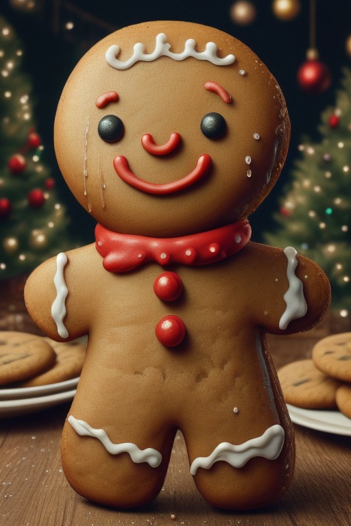 A crying sad scared Gingerbread_Man tears at a Christmas party standing on a table surrounded by plates full of various cookies, cinematic realism, high action, food, cookie, food focus, no humans, fantasy, photorealistic, photorealism, insanely detailed, sharp, 8k, masterpiece, trending on art station