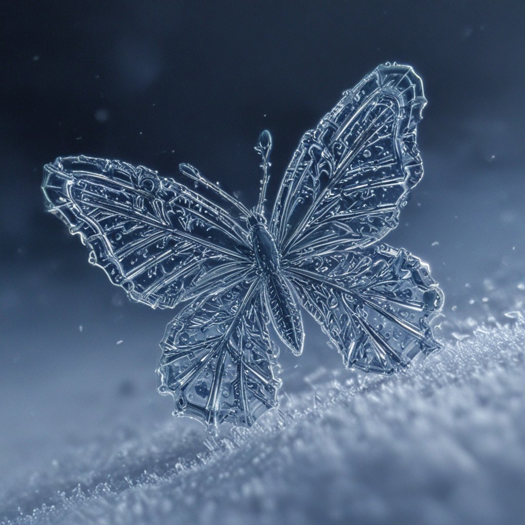 (snowflake focus), snowflake, A lovely butterfly, its wings are composed of snowflakes, flying in a snowy environment., highlighting its delicate details, with snowy and vibrant background, masterpiece, amazing quality, best quality, 4k, ray tracing, intricate details, highly-detailed, hyper-realistic, 8k RAW Editorial Photo,