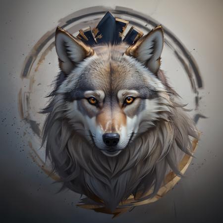 image of a black wolf seen from the front, bright yellow eyes, the wolf has a crown made of light.