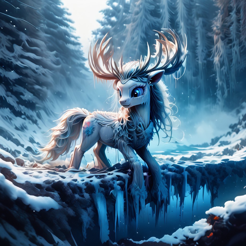wonderful, white deer, forgotten winter Land, by Harold Elliott and Jeff Soto, The water is so clear that it almost seems to glow in the dim light, at Golden hour, (HD, masterpiece, best quality, hyper detailed, ultra detailed, super realistic),amazing, , fr0stwrld, snow, ice, Rastex , realistic, Dreamy_soft_lines_for_Pony<lora:style\Fr0stWrld-v10.safetensors:0.73:0.73> <lora:style\Realism_aesthetics_for_Pony.safetensors:0.29:0.29> <lora:style\Hyper_Realism_Pony_XL.safetensors:0.25:0.25> <lora:style\Dreamy_soft_lines_for_Pony.safetensors:0.35000000000000003:0.35000000000000003>