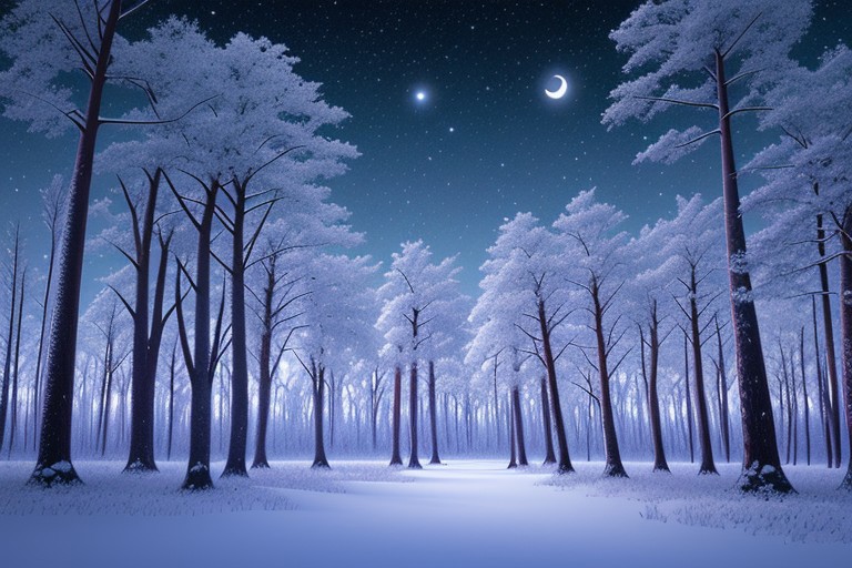 A peaceful winter forest on a clear night