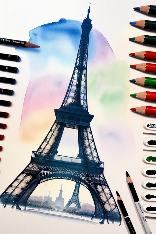 a Paris, France, Christmas landscape, watercolor, pencils, ink, clear contours, airy, transparent, haze, abstract, pastel colors, bird's eyes view at Paris, beautiful, realism, hyper-detailed, colorful, natural lighting, ultra-sharp, masterpiece