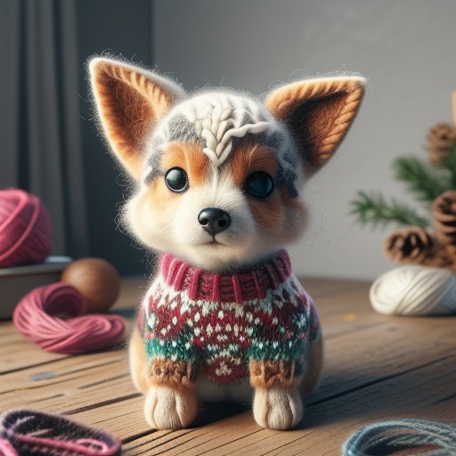 christmassweater, christmas sweater, corgi puppy made of wool, wearing a christmas sweater,