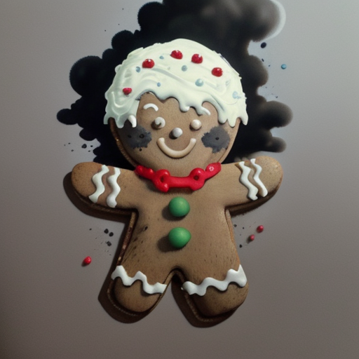Trompe-l'oeil Atompunk Umbral deferred rendering godot engine atmospheric charcoal drawing art nouveau, gingerbread Imp - Small, mischievous demon or sprite., astonishing Meadow, keen weather, <lora:Gingerbread_Man:1> Gingerbread_Man, food, cookie, food focus, no humans