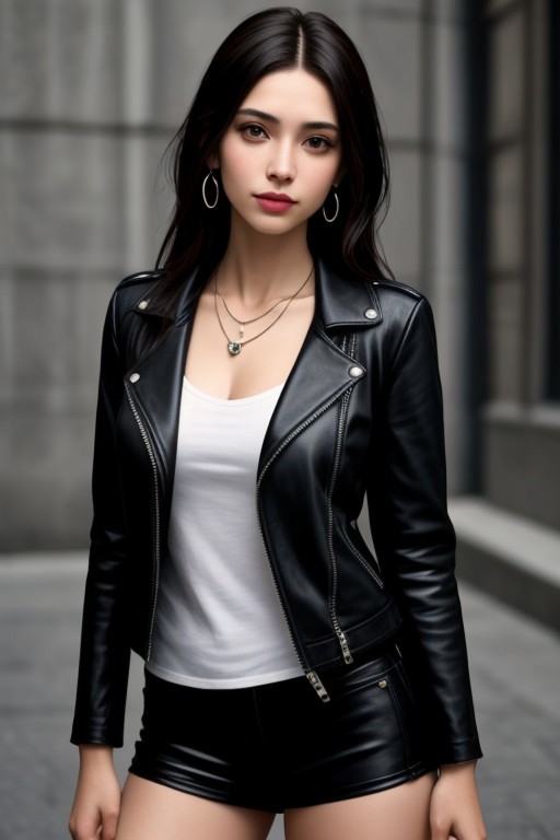 jewerly,earrings,necklace,glamour female,leather shorts, leather jacket