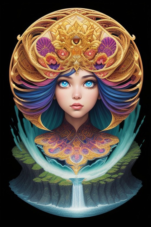 (hyperdetailed Western comic illustration, digital art, Hand-Drawn Expressive Linework, Varied Line Weight, Inked, Cartoon-Inspired, Stylized:1.2), (masterpiece:1.2), (A uniquely beautiful female dressed in high fashion attire that resembles the patterns found in nature, set against a composition that merges fractal patterns with dreamlike landscapes:1.1), (The subject is best lit so she can be seen clearly, The background features a surreal dreamscape with floating islands and cascading waterfalls:1.1), (hyperdetailed:1.1), (intricate details:1.0), (Refined details:1.1), (best quality:1.1), (very stylish detailed modern haircut, mesmerizing detailed radiant face, mesmerizing detailed beautiful eyes:1.2), highly detailed textures, random colors