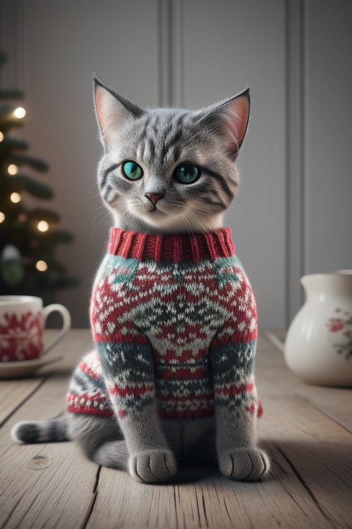 Cat in a christmassweater, extremely detailed, full hd, high resolution,