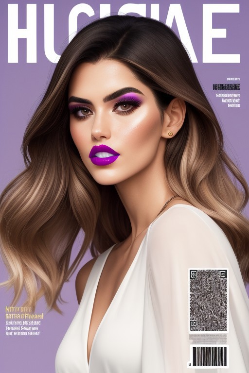 A magazine cover featuring a stunning supermodel with the bold headline "HOTTAKE" in large letters, accompanied by smaller text and a barcode. The cover image showcases a single girl with realistic features: she has black hair and striking brown eyes, detailed with mascara and delicate eyeshadow. Her face has a straight nose, thin lips, and parted lips revealing her teeth, all accentuated with lilac lipstick and a touch of blush. Her makeup is subtle and flawless, complementing her perfect skin. She wears a white blouse that highlights her collarbone. aprlmoon