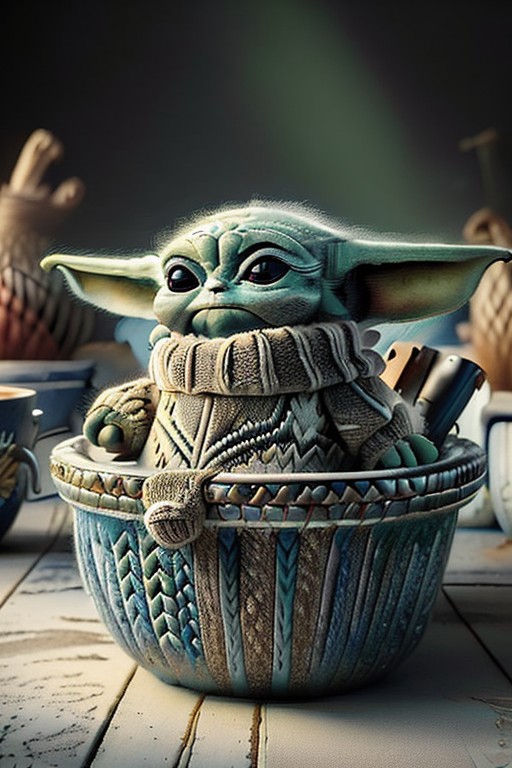 (masterpiece, best quality:1.8), christmassweater, christmas, Grogu "Baby Yoda", Star Wars, no humans, in a swamp planet, alone, sweet face, wear a christmas sweater in red, white and green, with an image of mandalorian stamped, wool sweater , firing a laser pistol, <lora:world_christmassweater:1>