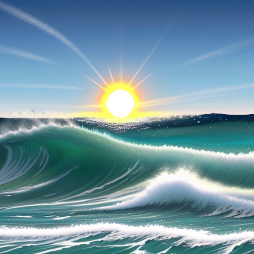 Ocean, waves, green water, daytime sky, big sea, no ships, no humans, sun