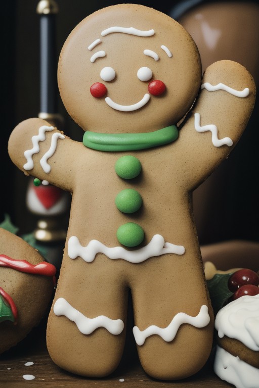 (score_9,score_8_up,score_7_up), (masterpiece, 8K, high quality, highres, ultra-detailed, absurdres, best quality, detailed), sidelighting, Gingerbread_Man, food, cookie, food focus, no humans, kitchen, gingerbread man holding a sword, wearing armor made out of cookies,