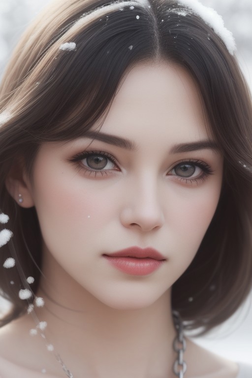 simple woman's drawing, powder, parchment, snow-white bokeh, lacquer on the lips, a chain, realistic, professional photo, close-up